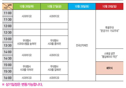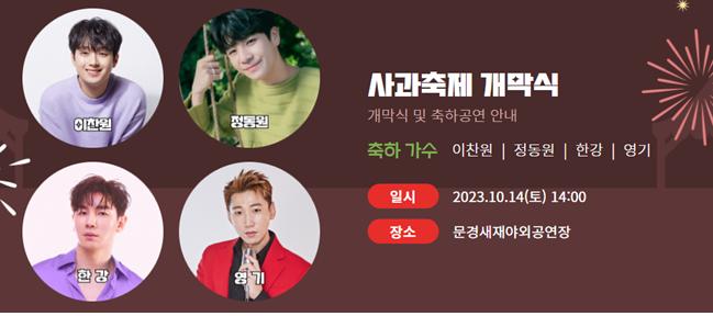 행사 일정 중 요금은 무료니 자유롭게 입장하시면 될 것 같습니다.문경사과축제 프로그램