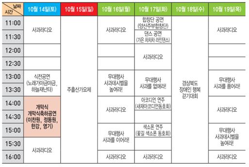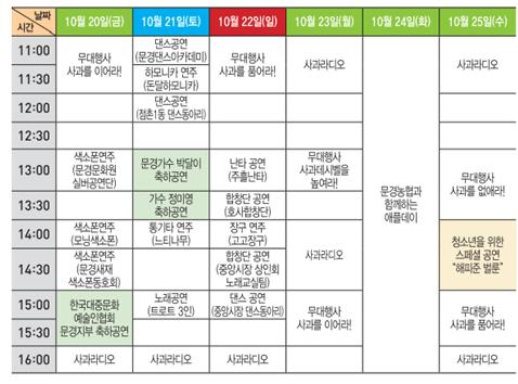 행사 일정 중 요금은 무료니 자유롭게 입장하시면 될 것 같습니다.문경사과축제 프로그램